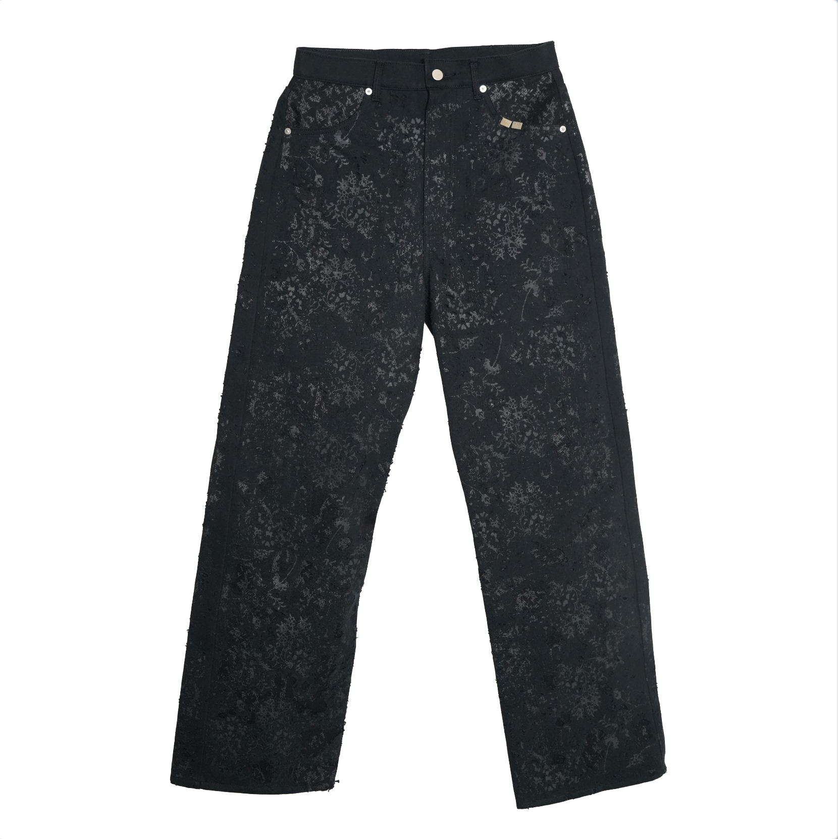 Flower Pattern Rubber Printing Damage Denim 【Black】FPR001-BK
